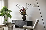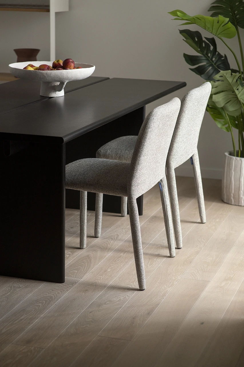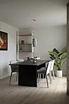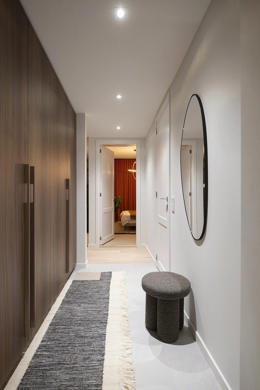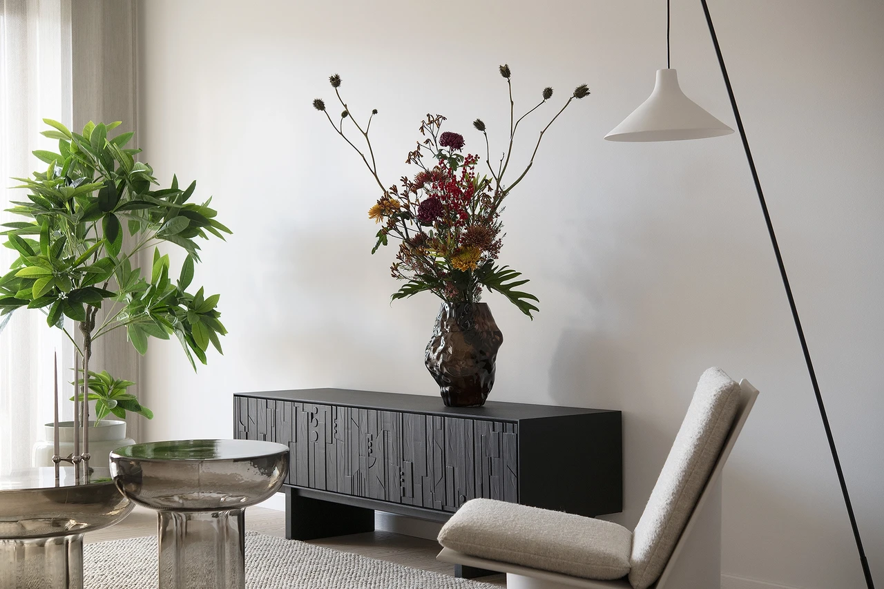 A city home with a calming, French sensibility. The furniture and lightings are sophisticated with a nature loving touch and the rooms given character with light tones and a bit rough structures. Retro-like forms are used as well as chrome details, which give a modern-urban touch.