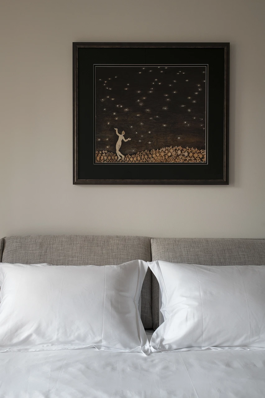 puude kohinat, vaadata mänglevat valgus-varjude vaheldumist. Seda õhustikku toetab valitud sisustus, mis on looduslähedane, käsitööd austav ja materjalidekäsitlus kergelt kore, üldmuljes kerge ning õhuline. Tonaalsus on peamiselt hele, struktuurid veidi jõulised, juures terrakota-tooni aktsente ning näpuotsaga retrolikkust vormides ning kroomitud detailides . Eesmärk oli luua rahulik kodune keskkond, mis annaks linnakärast eemaloleku tunde.
